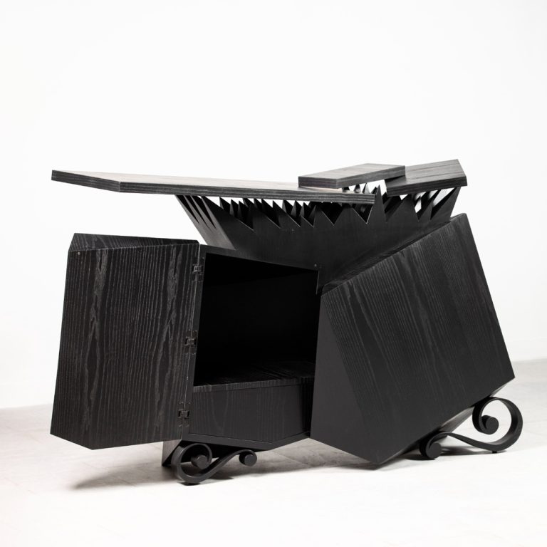 n°1: frame, seat and backrest, painted matt black.