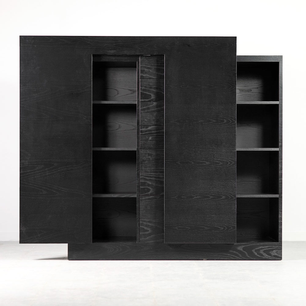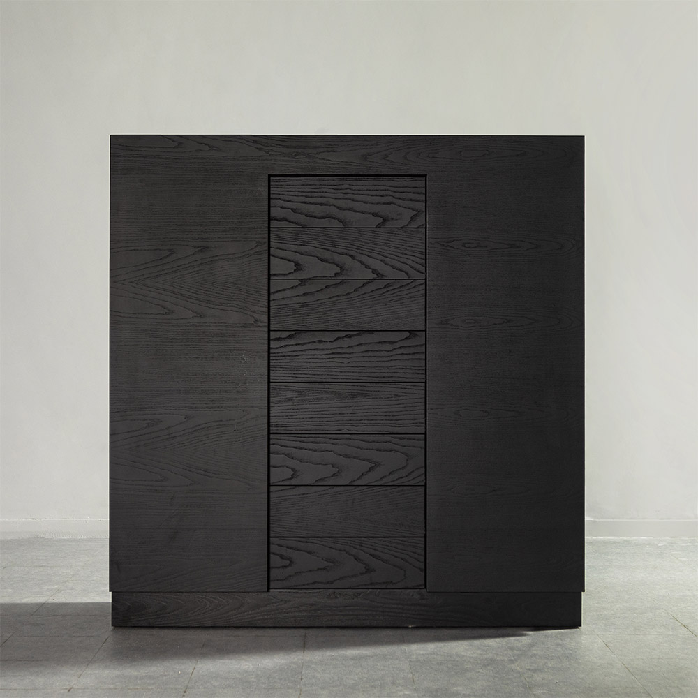 Open pore matt black painted oak wood.