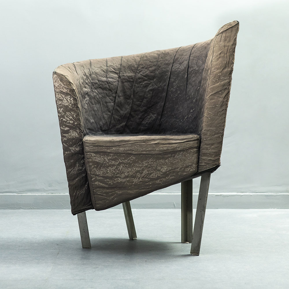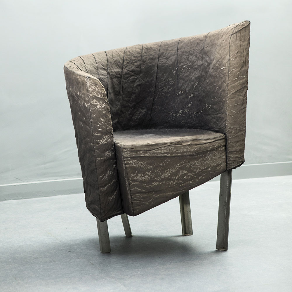 Pelle ecologica grigia e gambe verniciate grigio opaco
